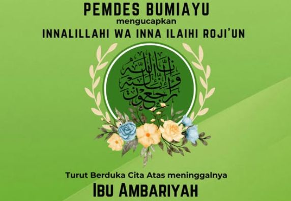 BUMIAYU- Pemerintah Desa Bumiayu menyampaikan rasa belasungkawa yang mendalam atas meninggalnya Ibu Ambariyah, warga Dusun Timbang RT 13 RW 04 Desa Bumiayu, pada Rabu, 8 Oktober 2025 sekitar pukul 13.00 WIB. Almarhumah berpulang dalam usia 63 tahun, meninggalkan seorang suami, Bapak Jupri, serta keluarga besar yang dikenal dekat dan aktif dalam kegiatan sosial di lingkungan desa.