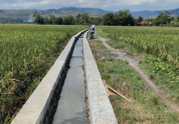 Talud saluran irigasi tersebut dibangun di sisi kanan dan kiri persawahan dengan panjang masing-masing 290 meter. Dengan selesainya pekerjaan ini, diharapkan aliran air untuk kebutuhan pertanian dapat berjalan lancar, sehingga mendukung produktivitas petani setempat.